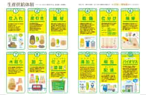 社長からのメッセージや組織図、一日の仕事の流れ、社内行事などをおおまかにまとめた案内書となっております。