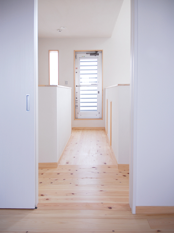 笠木や巾木など造作材に桧を使用。一部にでも無垢材を使うことで、やわらかな風合いに。