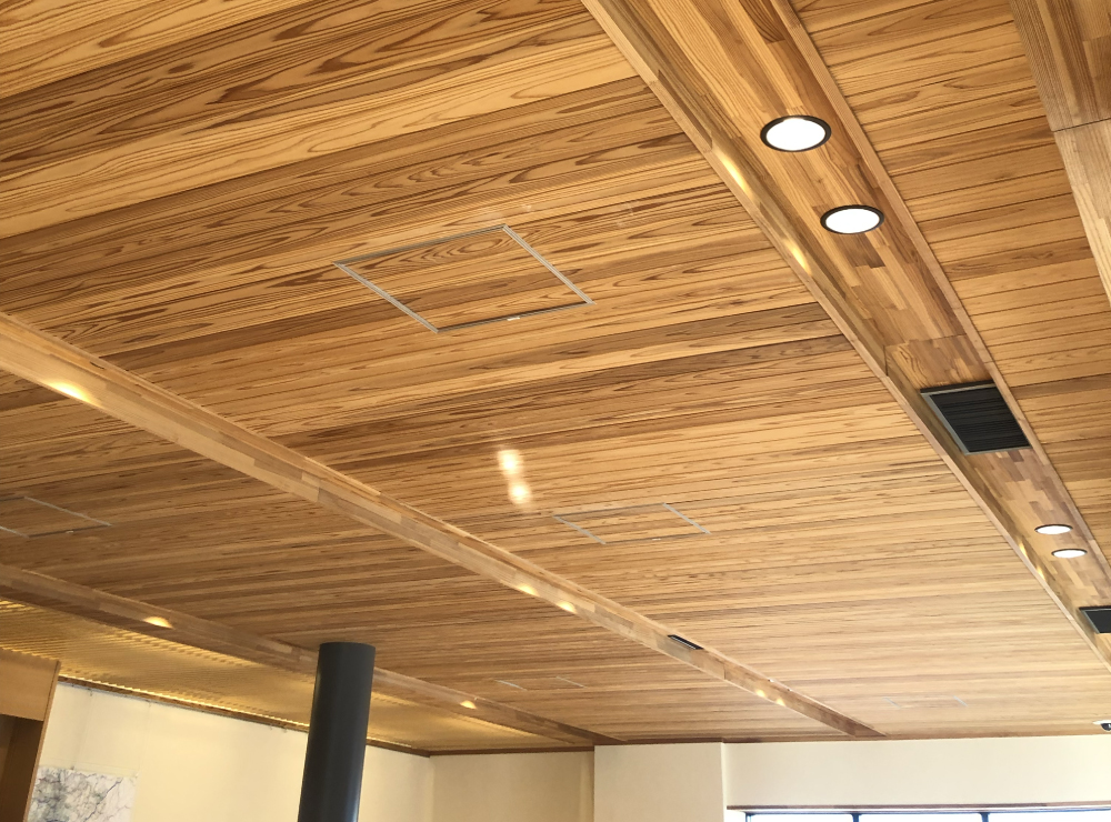 また、天井の杉の羽目板には、木の呼吸を妨げないオスモ塗装を行い、結露やカビの発生しにくい空間となっています。