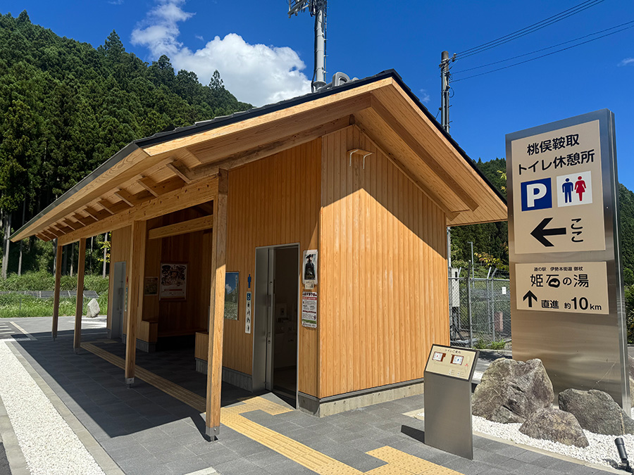 奈良県と三重県・伊勢神宮を結ぶ伊勢本街道上に設置された、御杖村の「桃俣鞍取トイレ休憩所」。